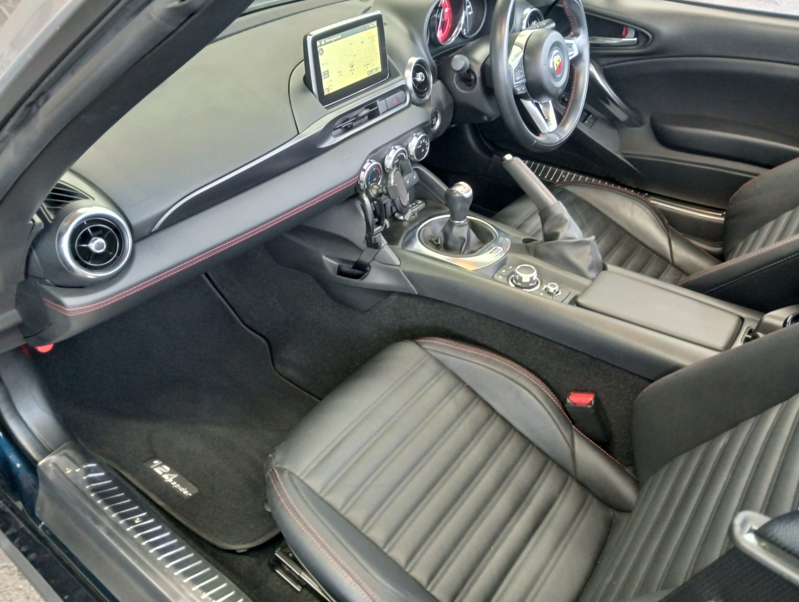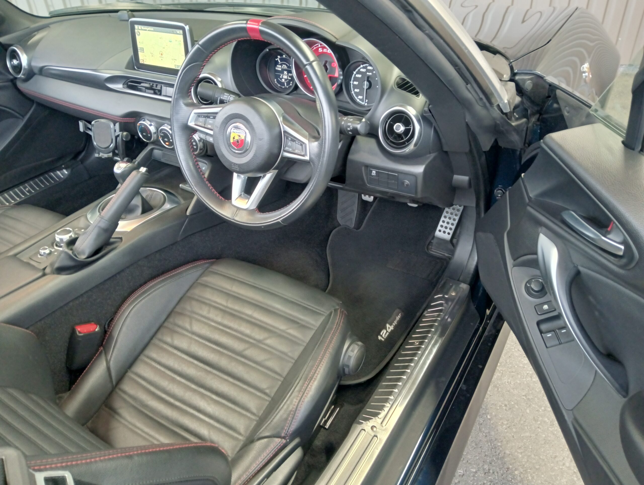 内外装ともに大変素晴らしいコンディション!走行22,000㎞の124スパイダーが入庫いたしました。外装は希少カラーである濃紺のヘッセン1972に外装にブラックレザーのインテリアが魅力的です。前後ブレーキは強化のためにENDLESSパット&DIXCEL・SDスリーートローターに交換したばかりです。ナビユニットはカープレイ対応のロードスター純正ユニットに換装してあります。試運転も歓迎いたしますのでコンディションの素晴らしさを是非体験してください。