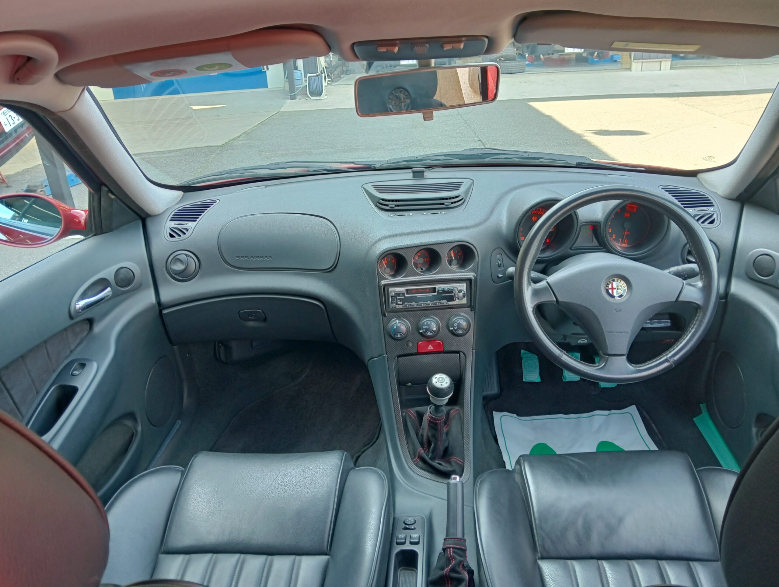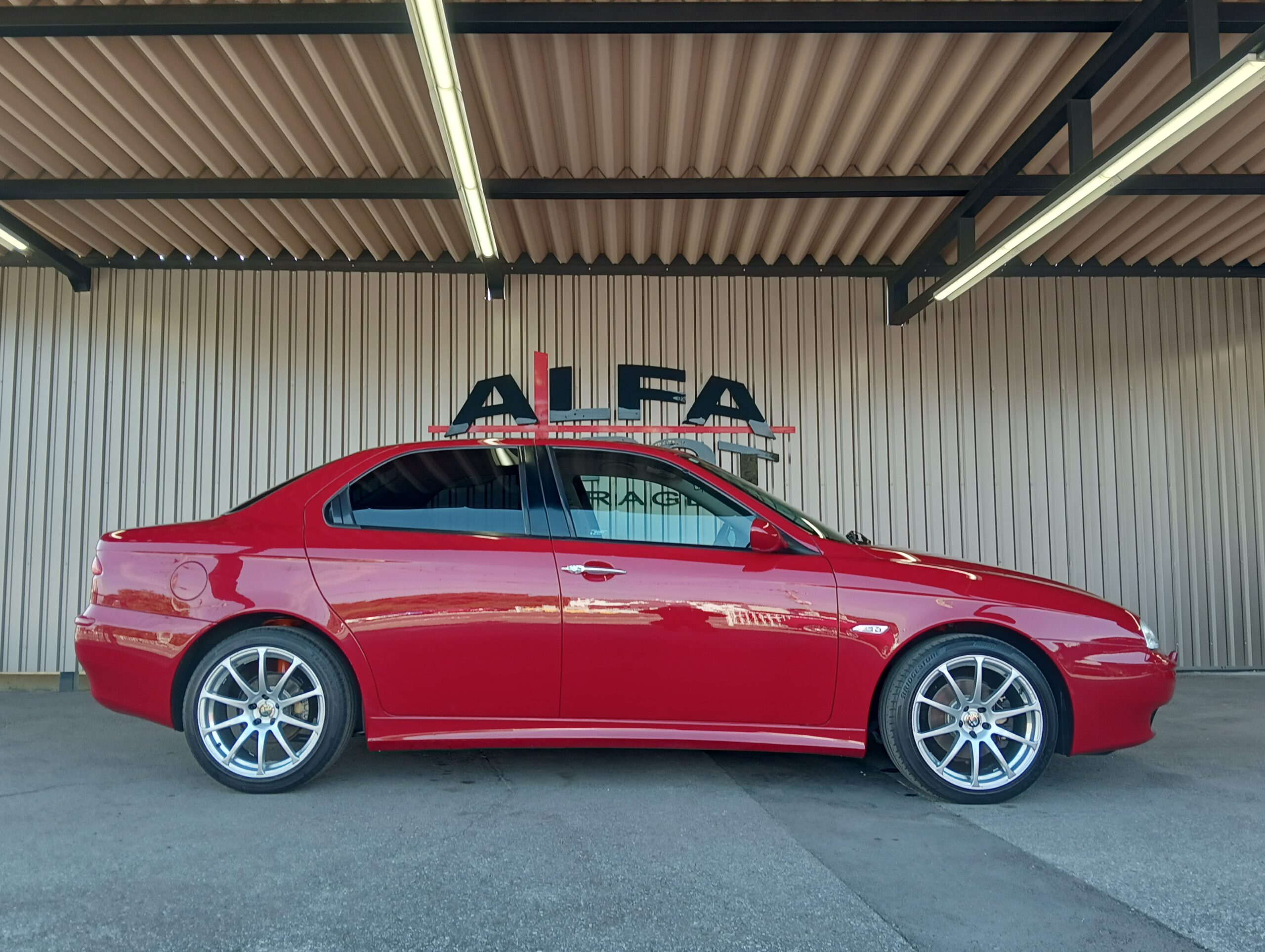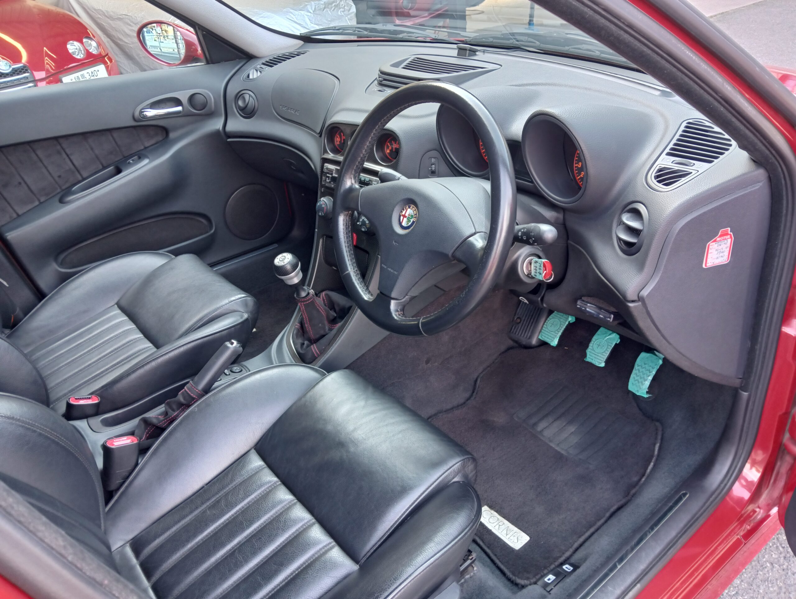最高のアルファV6サウンドを奏でるシングル触媒フェーズ1モデルの魅力的な156が入庫いたしました。外装は入庫時に当社で拘りの全塗装仕上げを施しましたので色褪せも無くツヤツヤのボディです。劣化のしやすいドアの内張もアルカンターラ調に張替えてあります。足回りは46,000キロ時に当社でアッパー&ロアーアーム&スタビリンクとKONI製STR-Tショックに交換済み。アルミホイールは軽量でスタイリッシュなYOKOHAMA製クロイツァーXの17インチが装着されております。REGO製マフラーが奏でるソプラノサウンドは病みつきになること間違いなし!