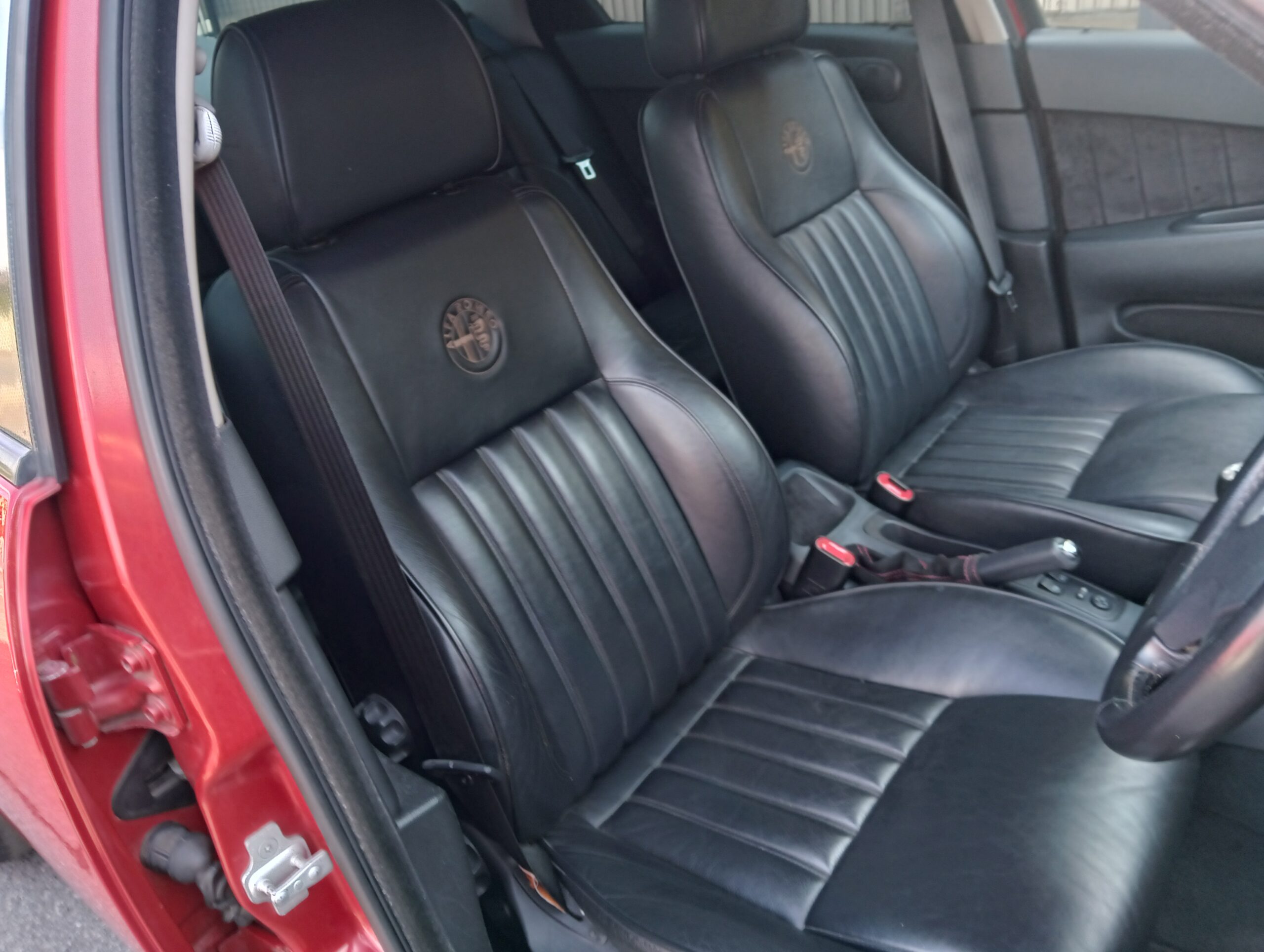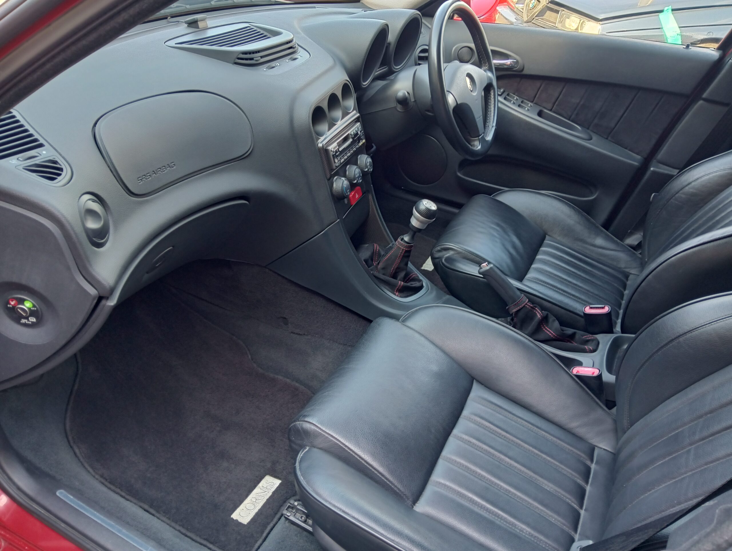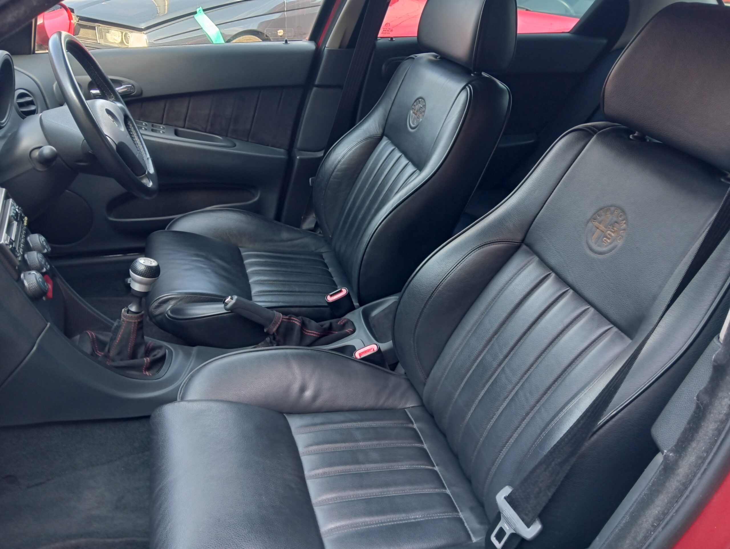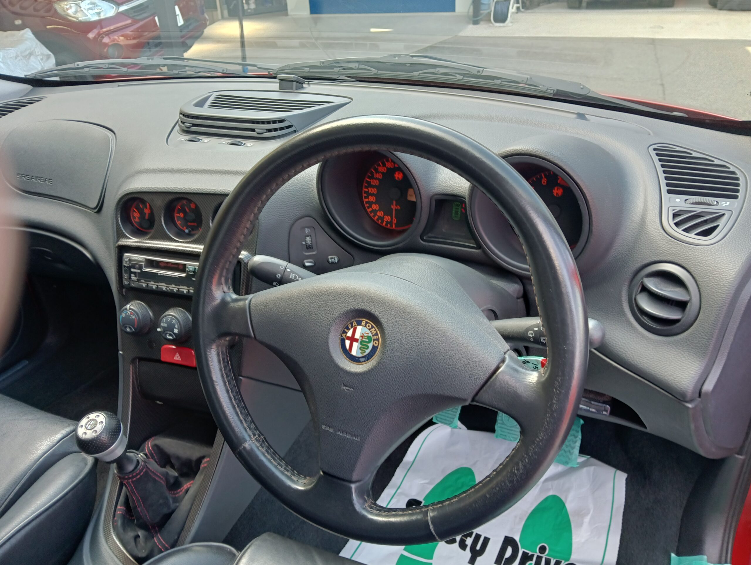 最高のアルファV6サウンドを奏でるシングル触媒フェーズ1モデルの魅力的な156が入庫いたしました。外装は入庫時に当社で拘りの全塗装仕上げを施しましたので色褪せも無くツヤツヤのボディです。劣化のしやすいドアの内張もアルカンターラ調に張替えてあります。足回りは46,000キロ時に当社でアッパー&ロアーアーム&スタビリンクとKONI製STR-Tショックに交換済み。アルミホイールは軽量でスタイリッシュなYOKOHAMA製クロイツァーXの17インチが装着されております。REGO製マフラーが奏でるソプラノサウンドは病みつきになること間違いなし!