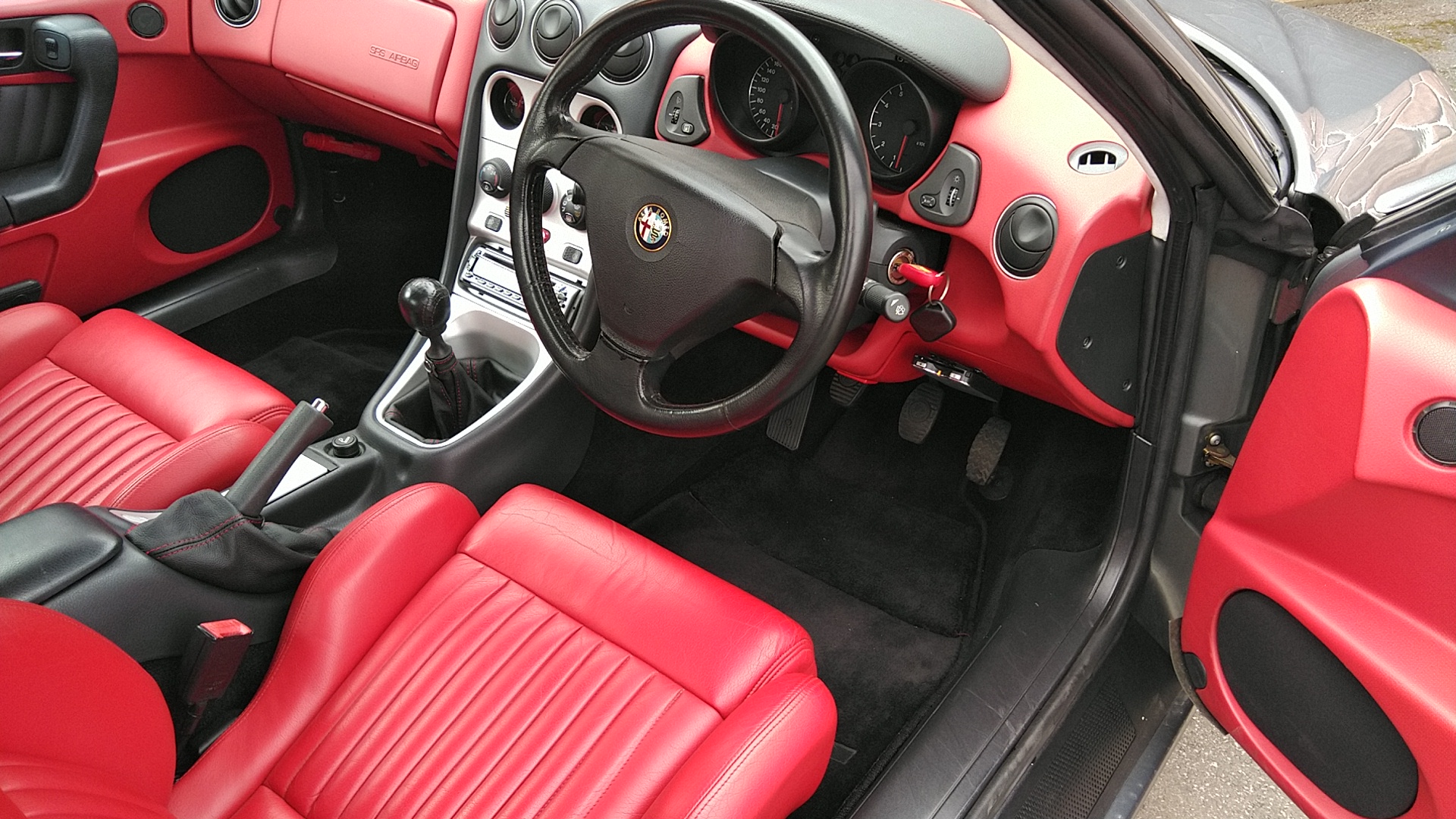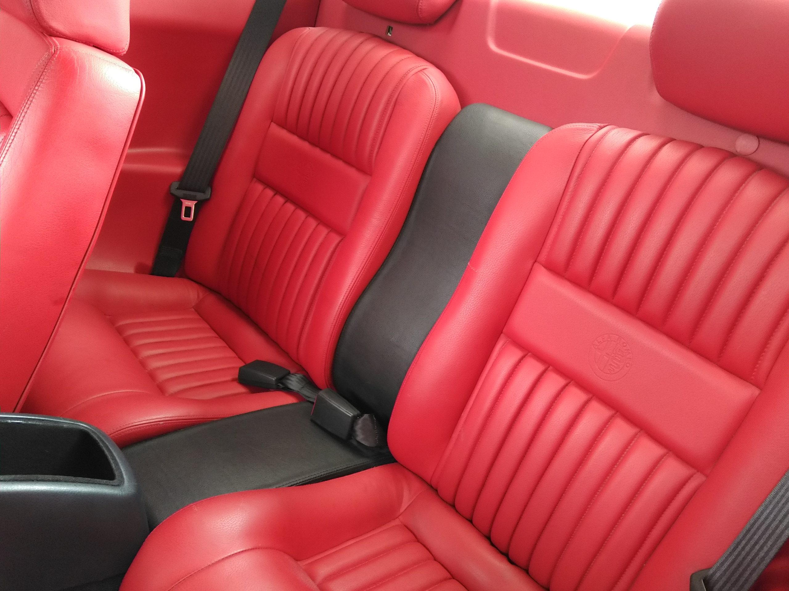 前オーナー様の愛情を感じられる大変素晴らしいコンディションのGTVのご案内です。渋いエクリプスグレーのボディカラーのGTVは探すとなかなかありません!目にも鮮やかなレッドレザーのインテリアは抜群のコンディションで劣化の避けられない天井も張替え済みです。タイミングベルト&ウォーターポンプは56,500㌔時に交換されており、さらに入庫時にGTA用軽量フライホイール&クラッチセットを使用してオーバーホールをいたしましたので鋭い吹け上がりをお楽しみください。
